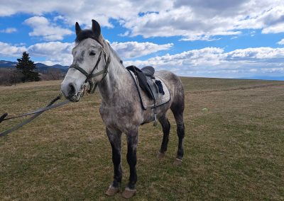 Lovaink (Manci, Dajka, Bubi, Lady, Gyuri, Zsivány, Táltos és Bátor) helyi jellegű, nyugodt, csendes természetű lovak, amelyek szekérbe és lovagolni egyaránt be vannak tanítva. Marmagasságuk 145-160 cm. Télen és nyáron fél ridegtartásban vannak, ezért mozgásuk mindig biztosított. Csikó koruktól itt nőttek fel, ezért szokva vannak a hegyi sziklás terepekhez, szűk ösvényekhez, ahol a nyugodtság és biztos járás a túrázások során elengedhetetlen.