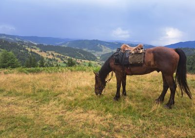 Lovas felszerelésünk angol típusú nyergekből áll, amelyekre, ha igény van báránybőrt teszünk, amely a vándortúrák alatt nagyobb kényelmet biztosít. A személyes csomagok szállítására első és hátsó nyeregtáskákat használunk, amelybe minden vendég 5-6 kg csomagot pakolhat a túrák során.